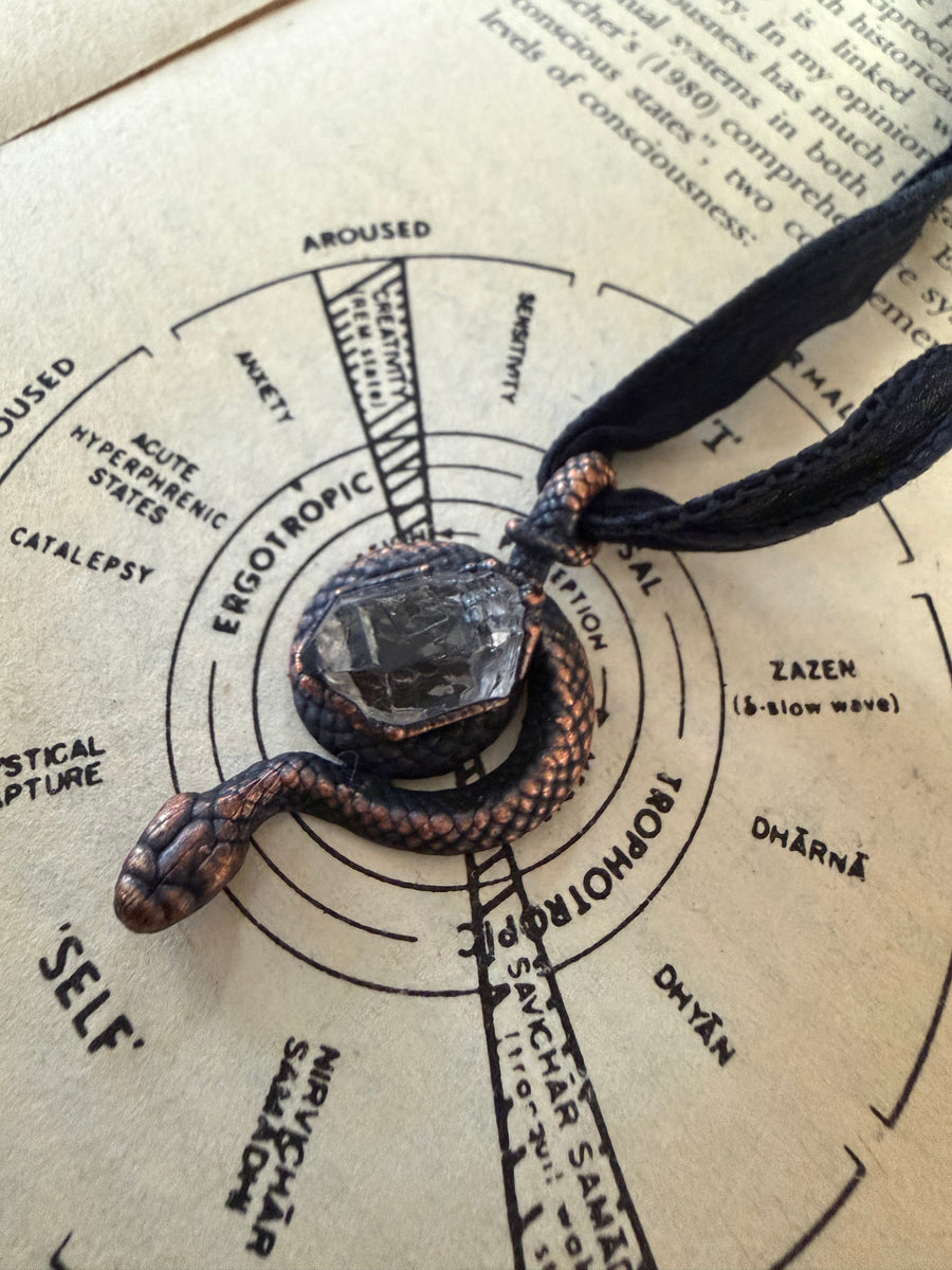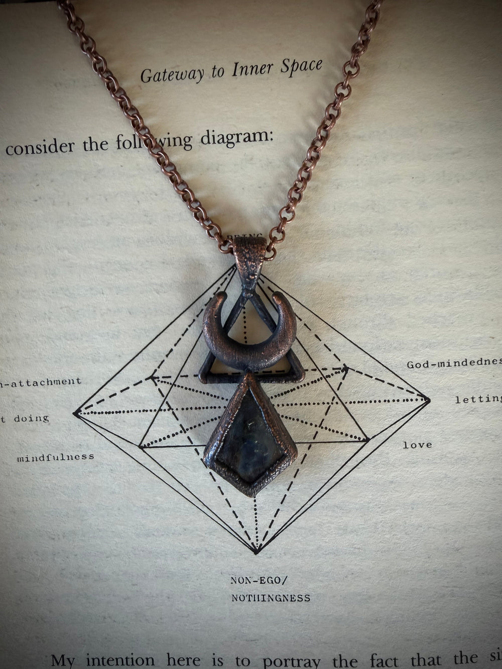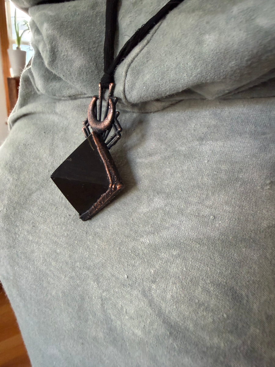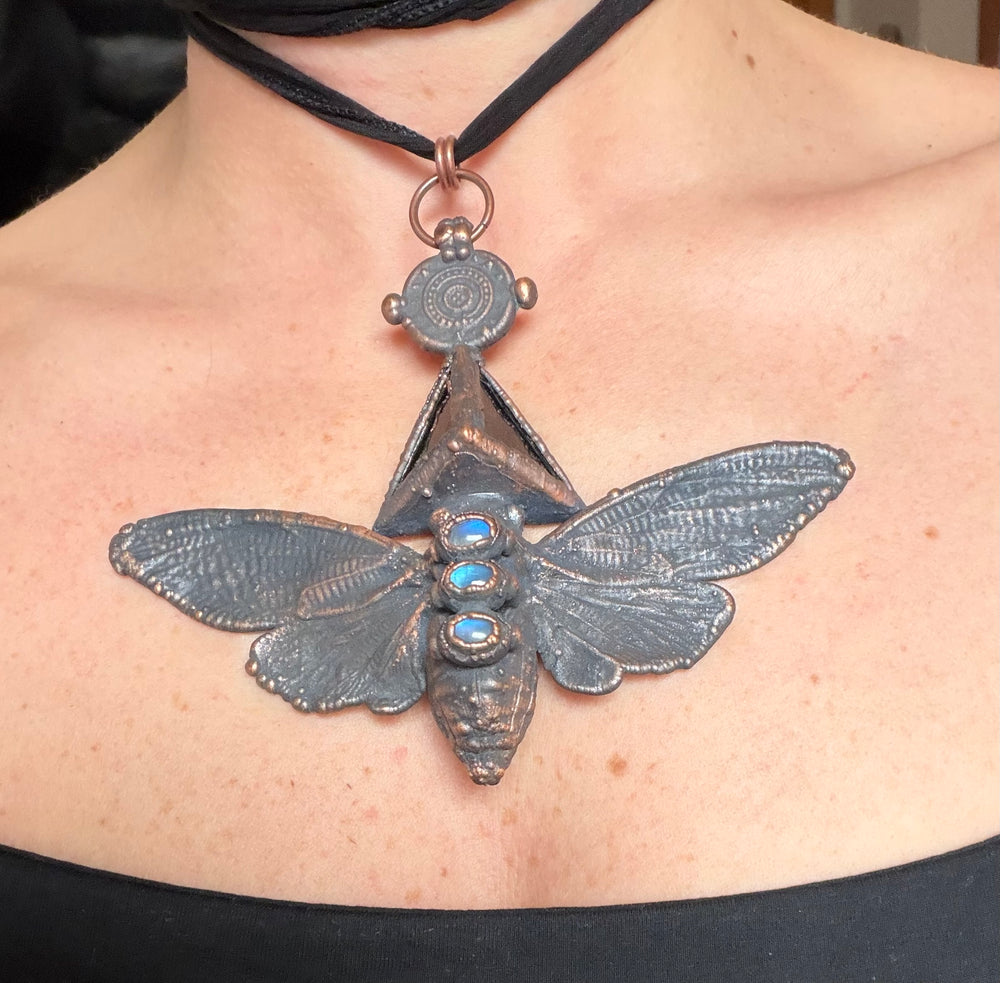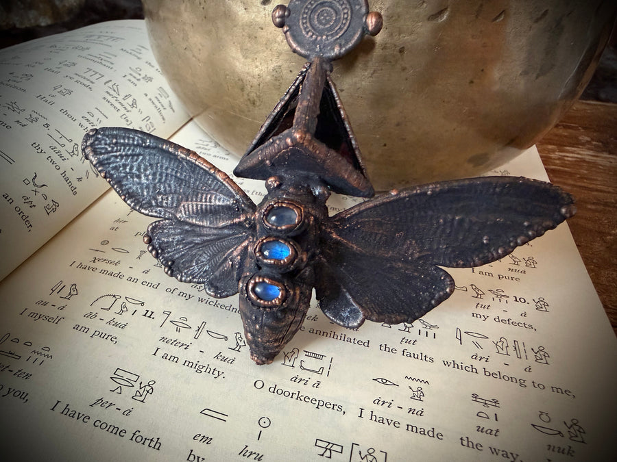 Prepare to be entranced by the alchemy of science and art, woven into divine, one of a kind talismans. Million year old fossils, high vibration crystals and powerful symbols are eternally preserved in copper through the process of electroforming. Adorn Your Temple 𓆃