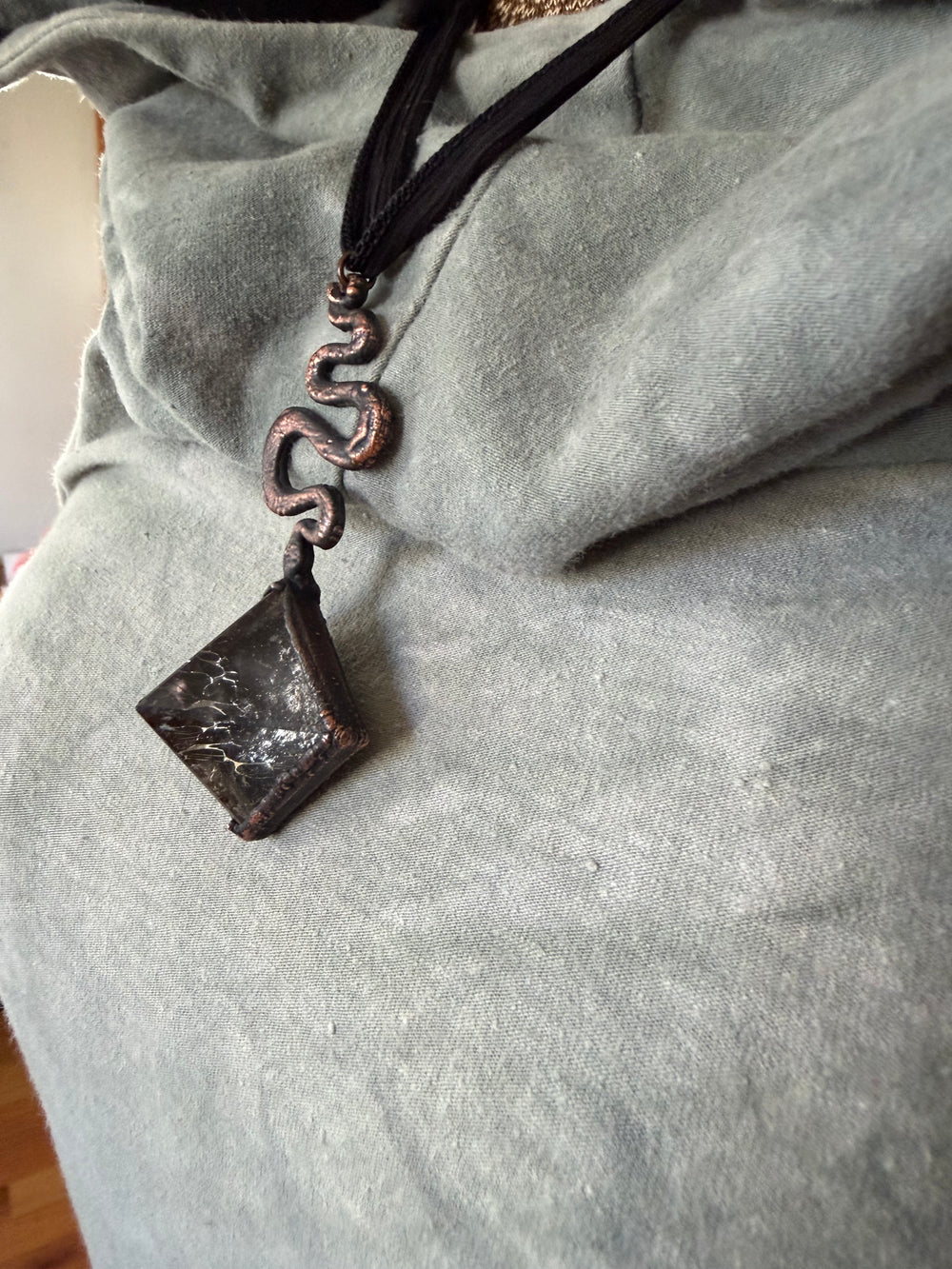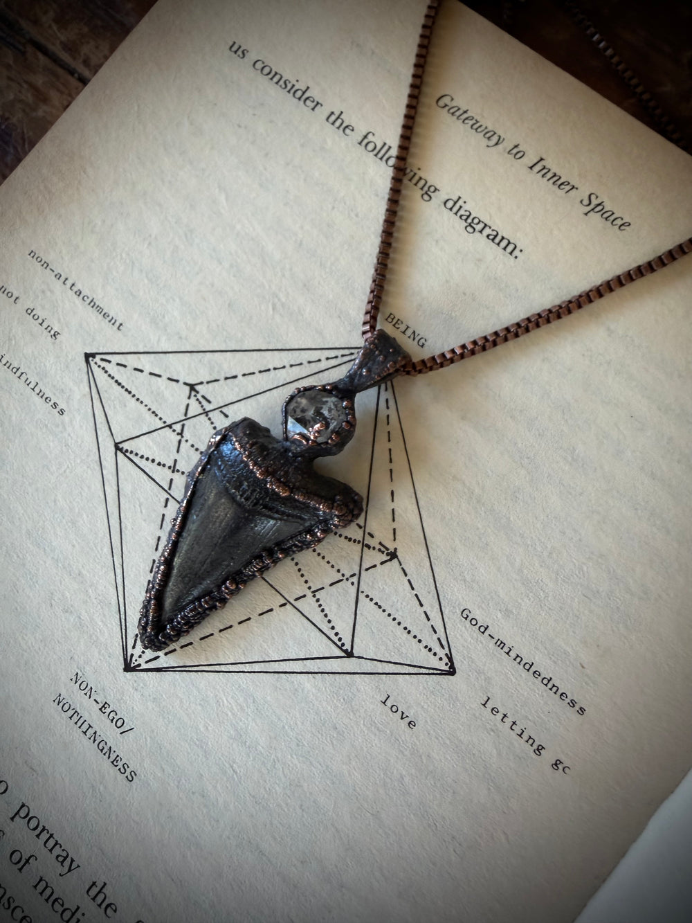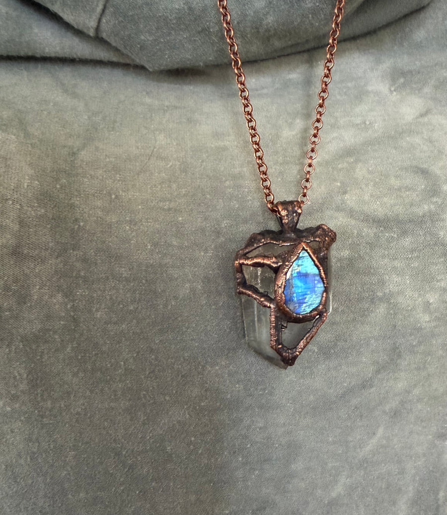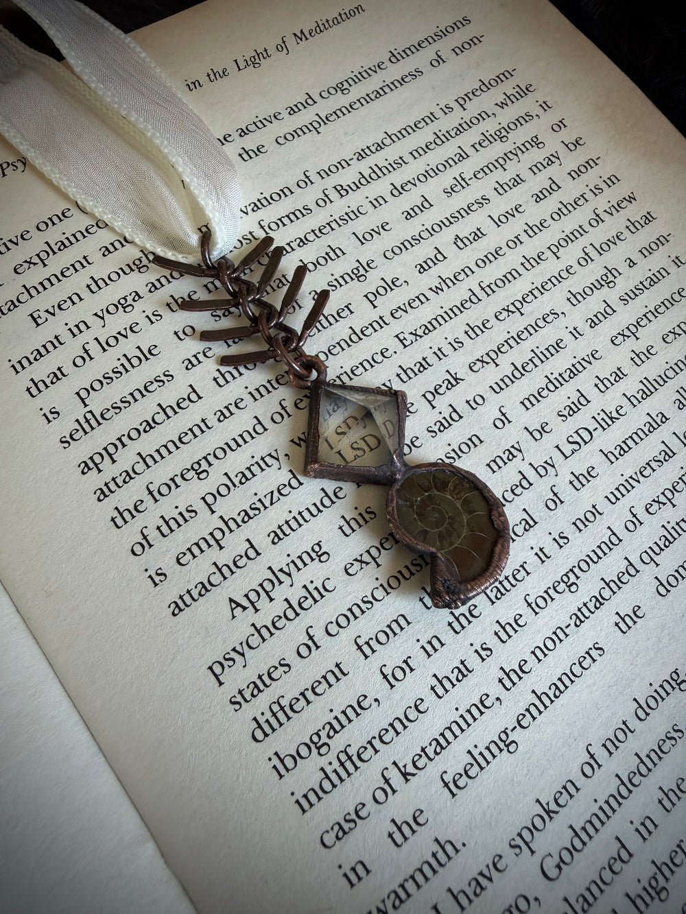 Prepare to be entranced by the alchemy of science and art, woven into divine, one of a kind talismans. Million year old fossils, high vibration crystals and powerful symbols are eternally preserved in copper through the process of electroforming. Adorn Your Temple 𓆃